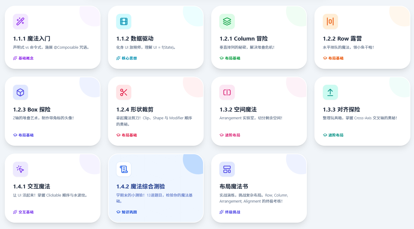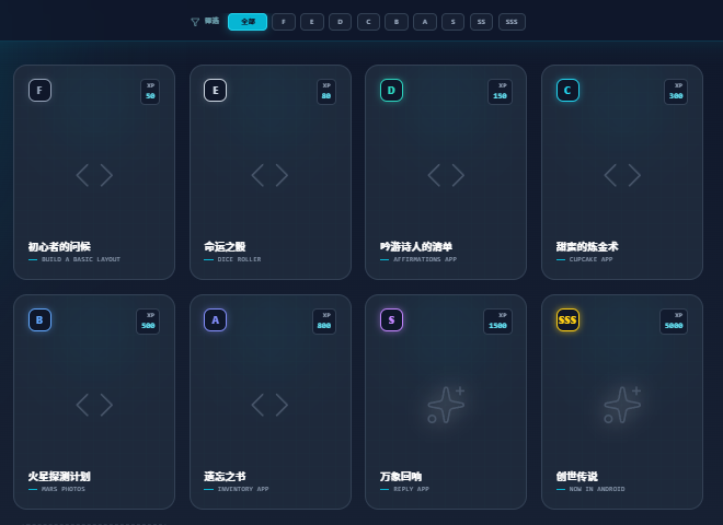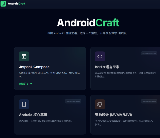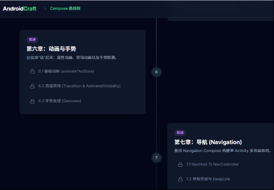 在我的网站里有多个学习模块,由于时间限制,目前只做到Compose,未来会开放诸如数据结构、计算机基础科目,如408,不局限于Android内容。而算法刷题,完美和这个公会悬赏体系融合。