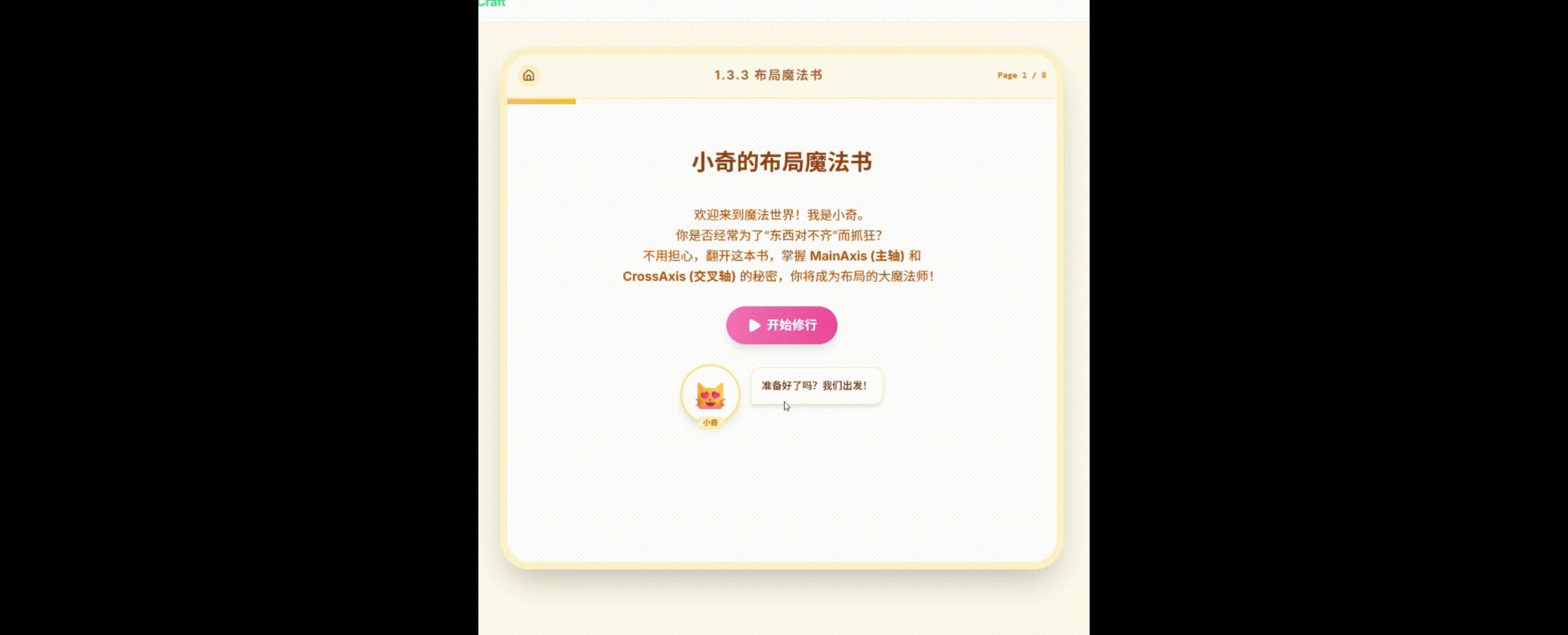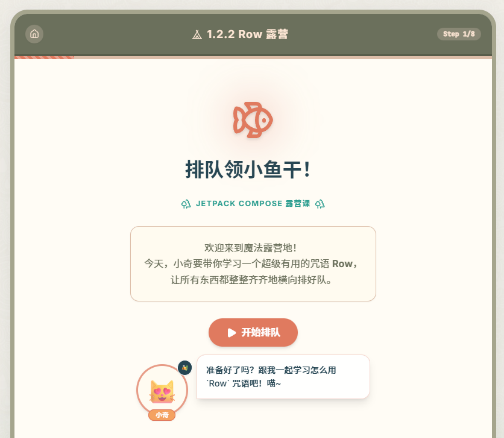 以动画片《甜甜私房猫》傲娇可爱猫猫小奇 和 《摇曳露营》 一起为零基础程序员讲解交互式学习内容,多使用马卡龙彩色图画+解说,内容专业,不要连续大段文字会造成阅读困倦 (好例子:style1.png和style2.png),要有直观的代码运行效果图。
